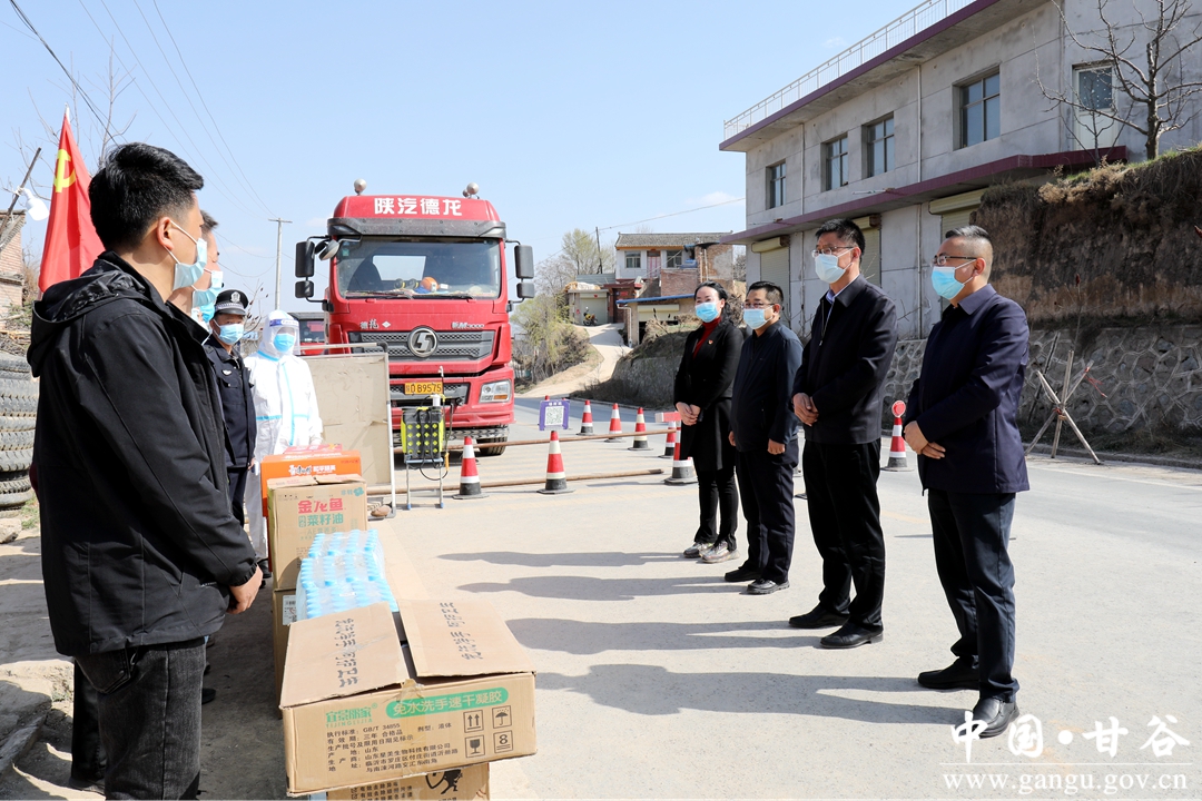 4月2日,甘谷县委书记吴健,县委副书记、县长孙忠平,县委副书记林如海分组到磐安高速出口、白家湾乡三十铺村、金山镇张家岔村疫情防控卡点慰问坚守一线的镇村干部、交通执法、医务工作者,感谢一线工作人员在疫情防控期间舍小家为大家,无怨无悔、默默坚守,为疫情防控作出的突出贡献,并通过他们向全县疫情防控人员致以崇高敬意和衷心感谢。县委常委、组织部部长李斌斌,县委常委、副县长蔺森山,副县长刘强一同慰问。