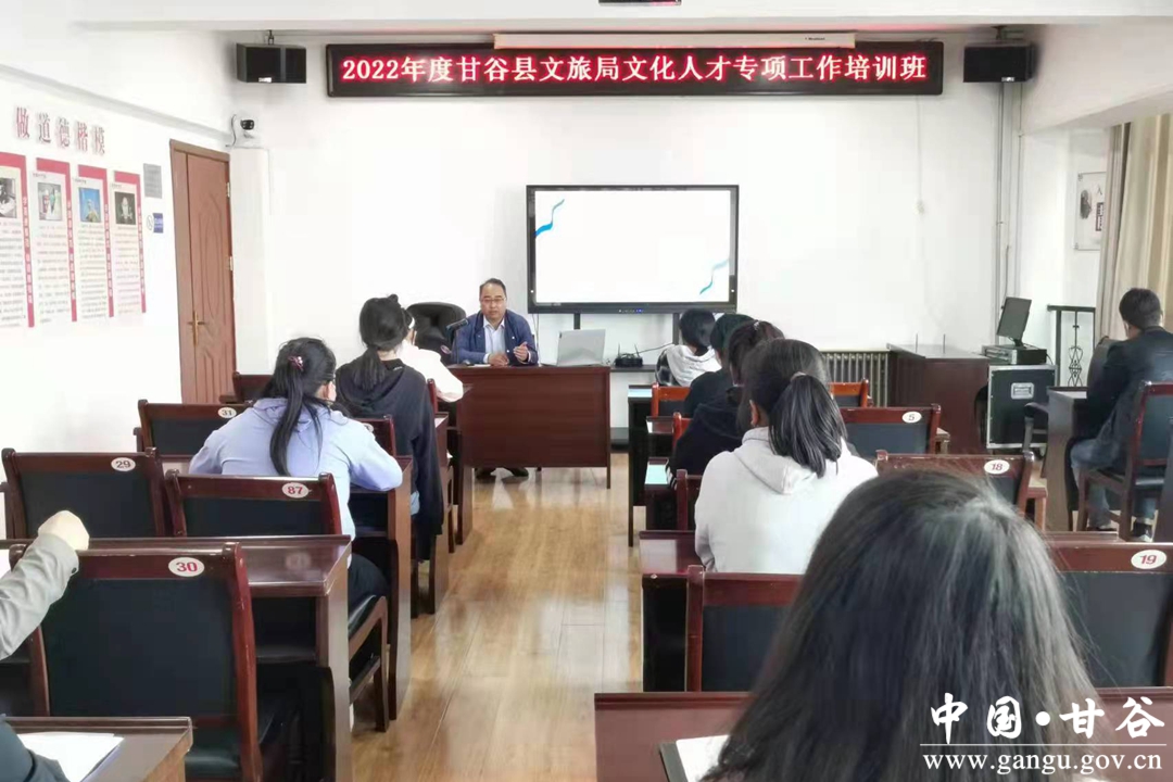 为进一步加快我县文化人才专项队伍建设,根据省、市《关于做好2022年度文化人才服务支持艰苦边远地区和基层一线专项工作的通知》精神,近日,甘谷县文旅局在2022年度文化人才专项工作培训班。主要深入学习贯彻省、市关于文化人才专项工作的部署要求,学习了解相关文博基础知识,安排部署下一阶段文化旅游工作。县文旅局相关负责人及15名文化人才参训。