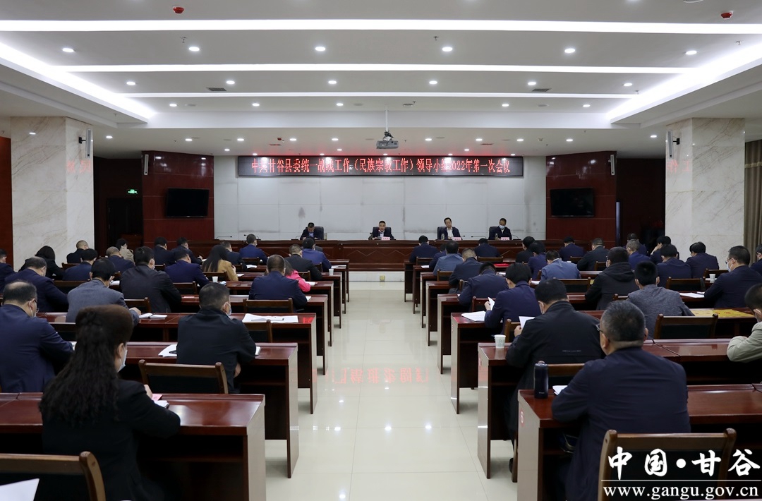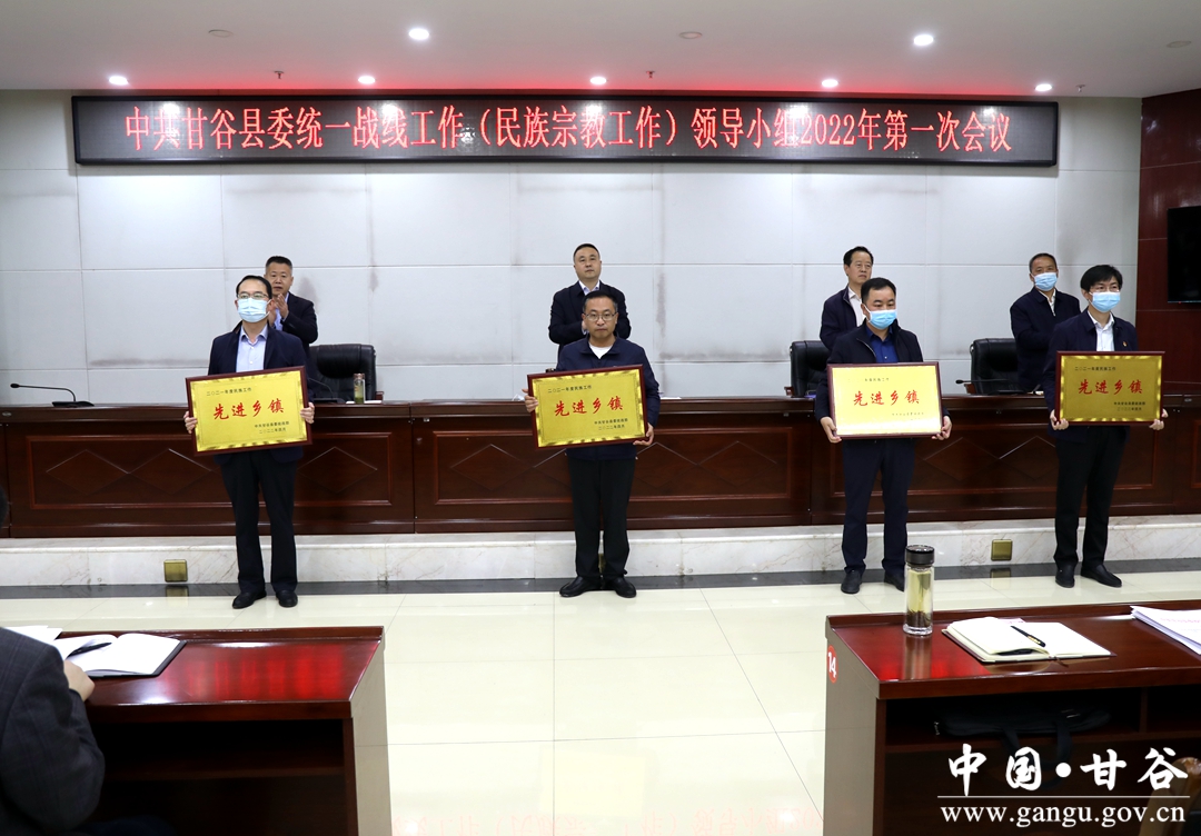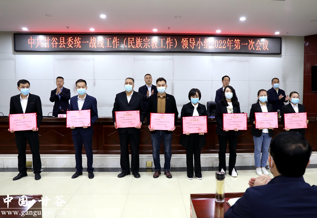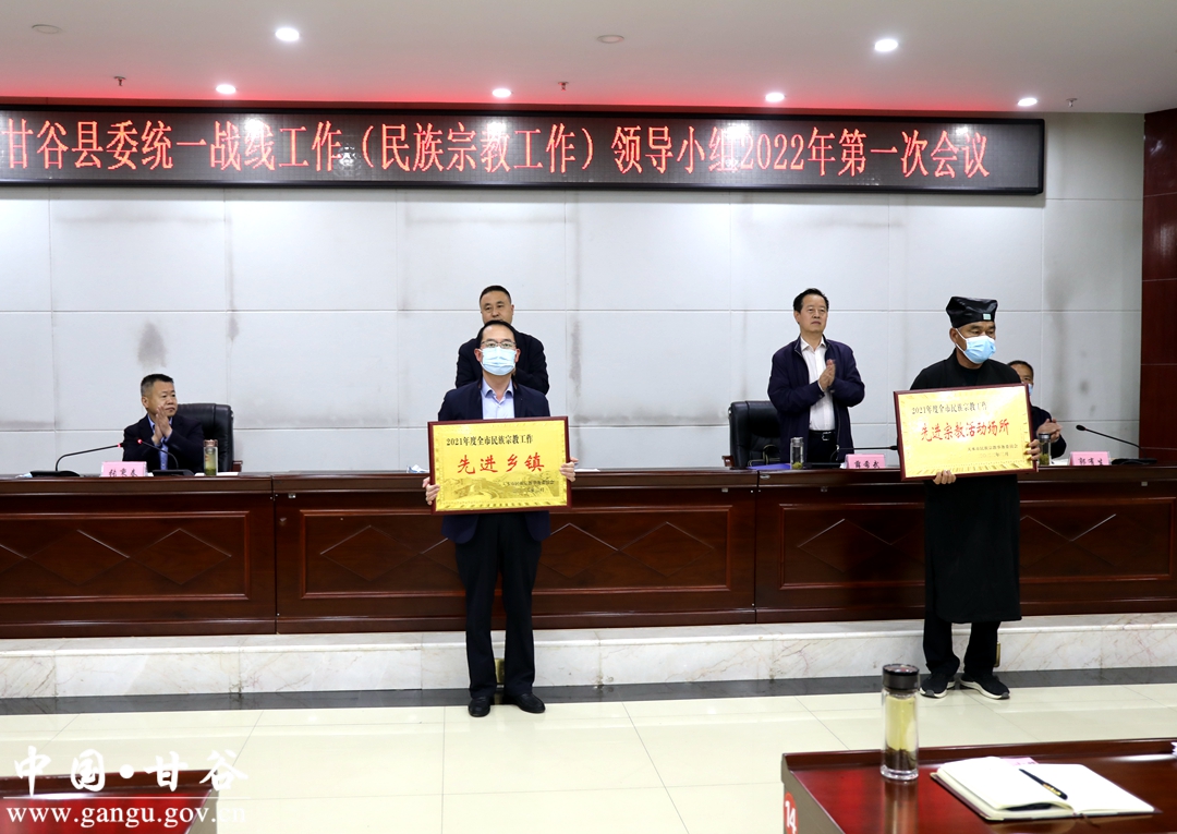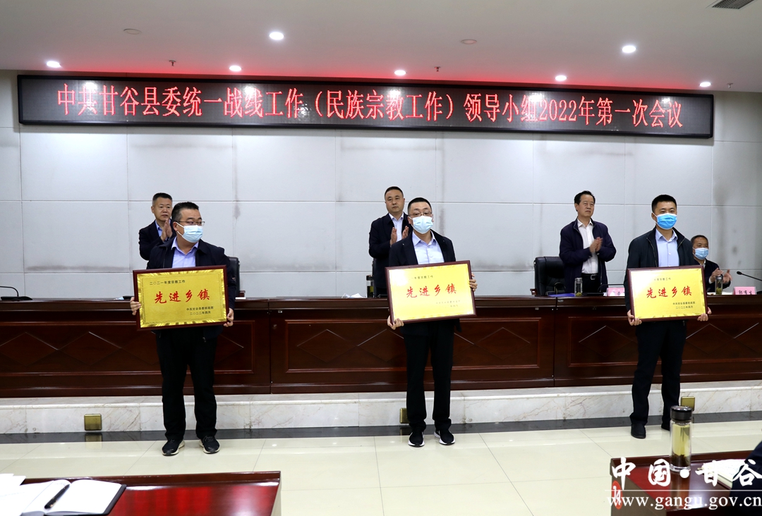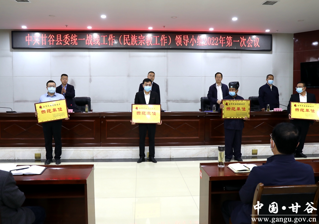 会议书面传达了全省、全市统战部长会议精神,审议了《中共甘谷县委统一战线工作(民族宗教工作)领导小组2022年工作要点及分工方案》和《关于以铸牢中华民族共同体意识为主线推进新时代的民族工作高质量发展的实施意见及重点工作任务分工方案》审议稿,宣读了中共天水市委宣传部、中共天水市委统战部、天水市民族宗教事务委员会《关于命名第三批全市民族团结进步示范区示范单位教育基地的决定》、天水市民族事务委员会《关于表彰2021年度全市民族宗教工作先进乡镇、先进宗教活动场所市级先进宗教团体的决定》、中共甘谷县委统战部《关于表彰2021年全县统战工作先进单位及先进个人的通知》。