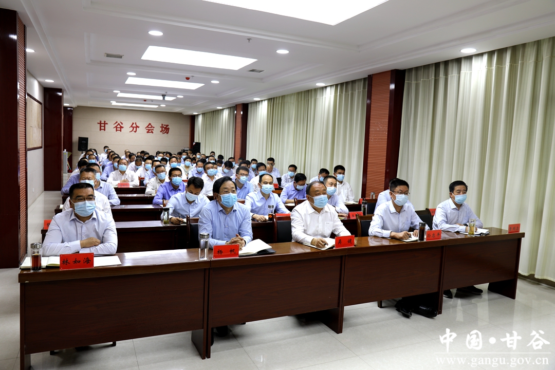 县委书记吴健,县委副书记、县长孙忠平,县人大常委会主任杨帆,县政协主席曹明忠等县四大组织领导及各乡镇、县直有关部门负责人在甘谷分会场参加会议。