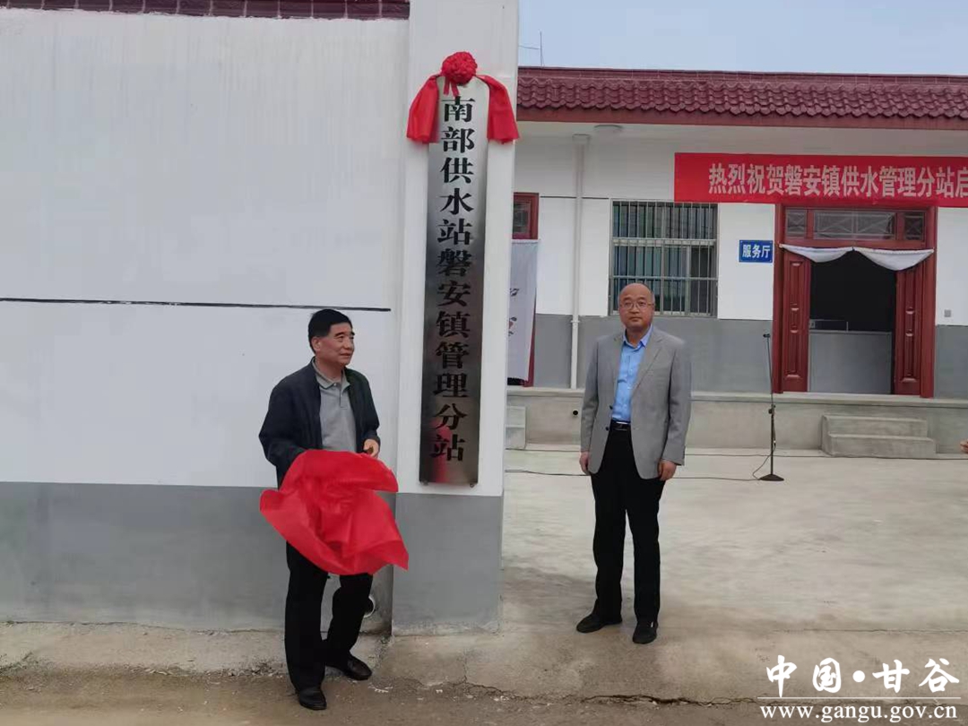 6月9日,甘谷县农村安全饮水工程西北部供水站新兴镇管理分站,东北部西北部供水站安远镇管理分站,南部供水站磐安镇、六峰镇和武家河镇管理分站正式揭牌运行,标志着我县在全市率先实现乡镇供水管理分站全覆盖。县人大常委会副主任陈旭,副县长金辉,县政协副主席蒋文出席揭牌仪式并为各分站揭牌。
