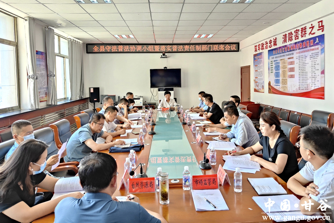 会议审议通过了《中共甘谷县委全面依法治县委员会守法普法协调小组工作规则》、《甘谷县2022年县级国家机关普法责任清单》等四个规范性文件。县自然资源局有关负责人作了会议交流发言。
