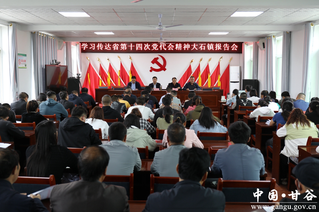 曹明忠强调,学习宣传贯彻省第十四次党代会精神,要在联系实际上下功夫,在抓好落实上见成效。站在奋进“十四五”、开启新征程的历史起点上,大石镇广大党员干部要带头学习贯彻省第十四次党代会精神,紧紧围绕省党代会确定的目标任务和全县改革发展稳定大局,认真履职尽责,主动担当作为,坚持以“产业强镇、商贸活镇、文旅兴镇、和谐安镇”为目标,紧跟形势变化,抓住发展机遇,用活用好政策,全力在推动乡村振兴、培育壮大产业、加快劳务输转、人居环境整治、建设平安乡镇等方面下功夫,着力打造历史文化名镇,奋力开创经济社会发展工作新局面。