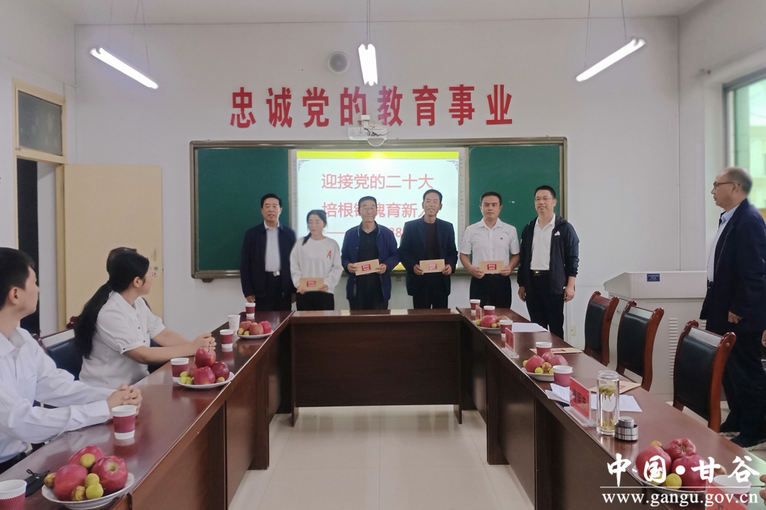 9月8日,在第38个教师节来临之际,县政协主席曹明忠带领教育局负责人来到甘谷四中,看望慰问谢家湾、武家河、白家湾等学区和四中、文泽学校老党员教师、困难教师和优秀教师,给他们送去了慰问金,并通过他们为全县教育工作者致以节日的祝福与问候。县政协副主席魏杰一同慰问。