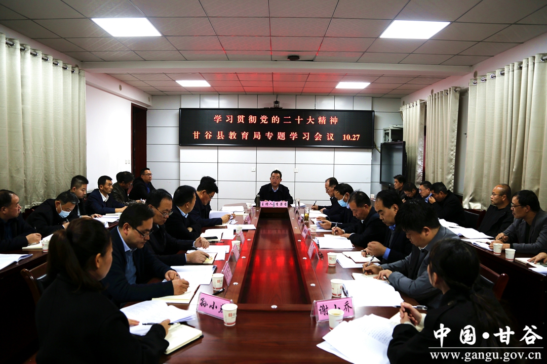 为了在全县教育系统掀起党的二十大精神学习热潮,引导广大教师提振精神、奋发有为,为推动全县教育高质量发展作出新的更大贡献,10月27日下午,甘谷县委教育工委、县教育局党组理论学习中心组学习(扩大)会议,专题学习党的二十大精神。会议邀请县党组(党委)理论学习中心组巡学旁听工作小组列席。县委教育工委书记,县教育局党组书记、局长李果香主持会议。县教育局班子成员、科级干部,局机关股室长共计30余人参加会议。