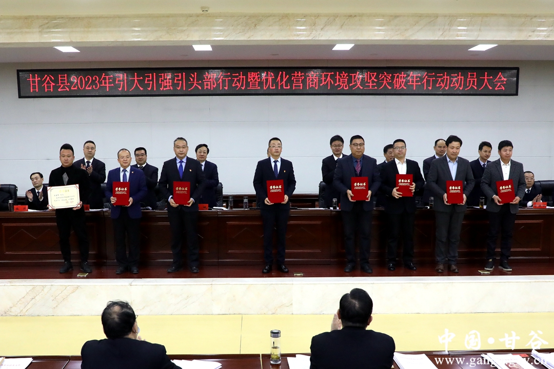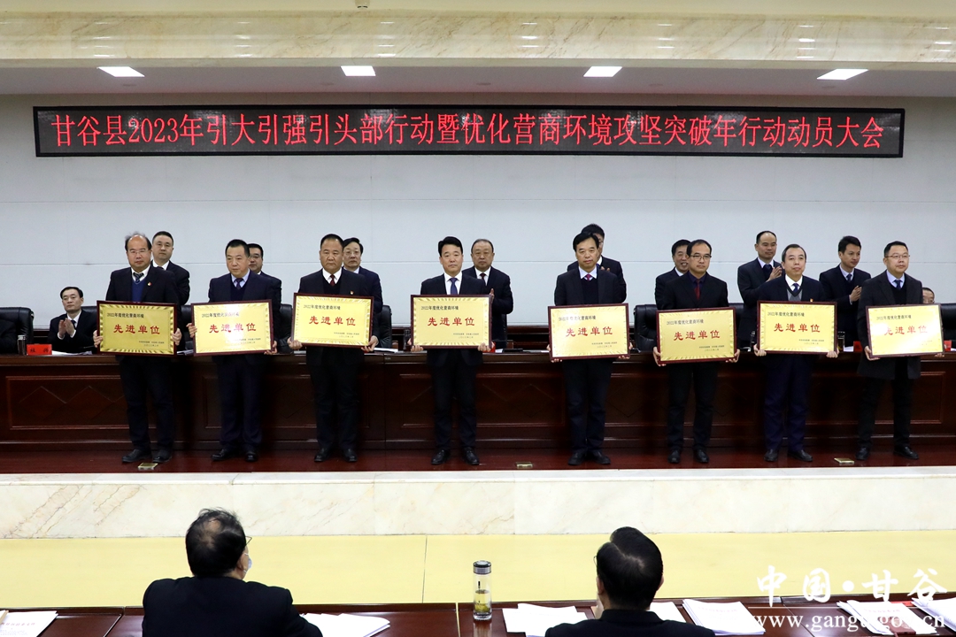 在全省上下深入开展“三抓三促”行动,冲刺起步奋力实现首季开门红的关键时期。2月17日,甘谷县召开引大引强引头部行动暨优化营商环境攻坚突破年活动动员大会。县委书记吴健出席会议并讲话。他强调,全县上下要坚持发展第一要务不动摇,把引大引强引头部和优化营商环境攻坚突破年行动作为蓄势发力、爬坡过坎、追赶进位的重要抓手,以开局就是决战的必胜信心,以起步就是冲刺的昂扬斗志,吹响冲锋号,鼓足精气神,以招商引资“一路红”推动经济发展“全年旺”。