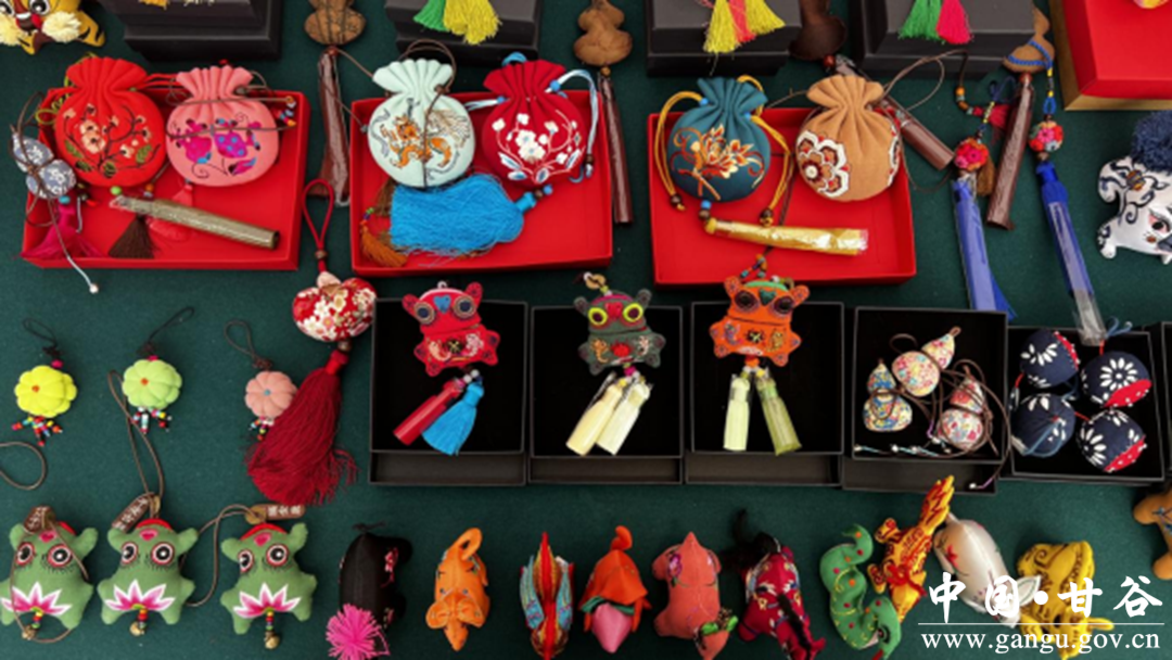 中国四大名砚之一的甘肃洮砚以其色泽碧绿、温润细腻的特点而著名,作为国家级代表性传承人卢锁忠的儿子,卢广成凭借在中央美院的学习功底,以现代明快的设计理念让洮砚实现创造性转化,打造了“文公子”洮砚系列产品,受到现场嘉宾和观众的青睐。庆阳香包古拙质朴、色彩浓郁,甘肃省级代表传承人刘兰芳将其传统元素与国潮内涵相结合,创作出“十二生肖”“虎头帽”等古典与潮流并行的文创产品。作为刘兰芳的儿子,庆阳歧黄文化传播有限公司负责人张煜琛头戴“虎头帽”,布展期间就被过往游客围观,买走了老虎枕头、香包挂饰等产品。