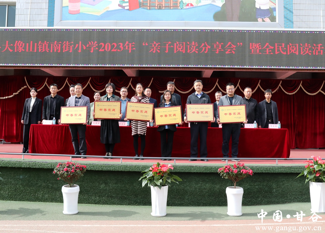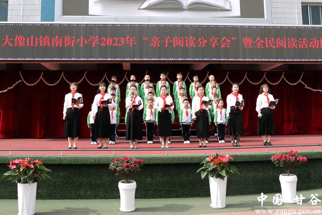 为积极响应2023年全国教育工作会议提出的“要把开展读书活动作为一件大事来抓,引导学生爱读书、读好书、善读书”,进一步提高家长对孩子阅读的重视,促进亲子阅读常态化,全面推动学校阅读活动的深入开展,为全体师生及家长营造内涵丰富、特色鲜明的读书氛围,4月29日,甘谷县大像山镇南街小学举行第二届亲子阅读交流分享活动暨全民阅读推进会。县教育局、大像山镇相关负责人,家长代表、南街小学师生代表共计1500余人参加此次活动。
