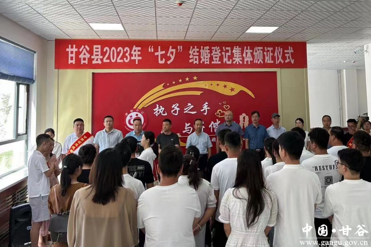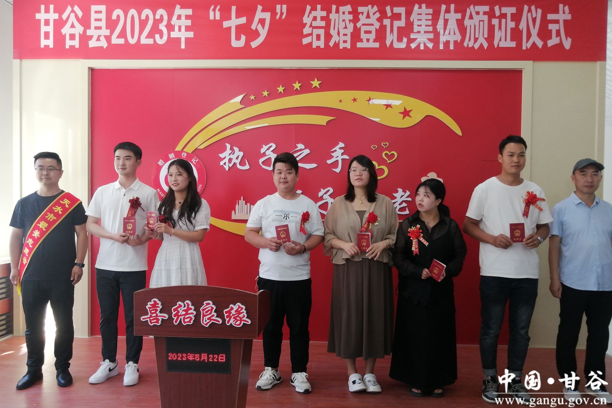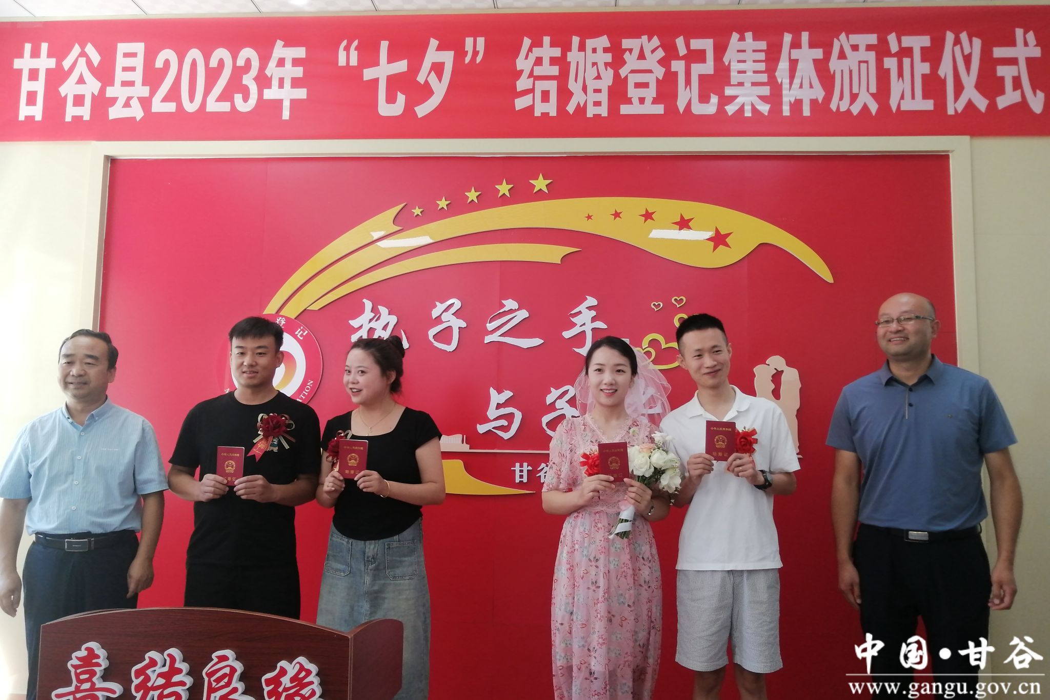 今年七夕节,甘谷县多项举措向当天办理结婚登记的新人送上美好的祝福。领证的新人们在对爱情婚姻的美好追求中,享受到了领证的圣神及党和政府及社会的关怀。