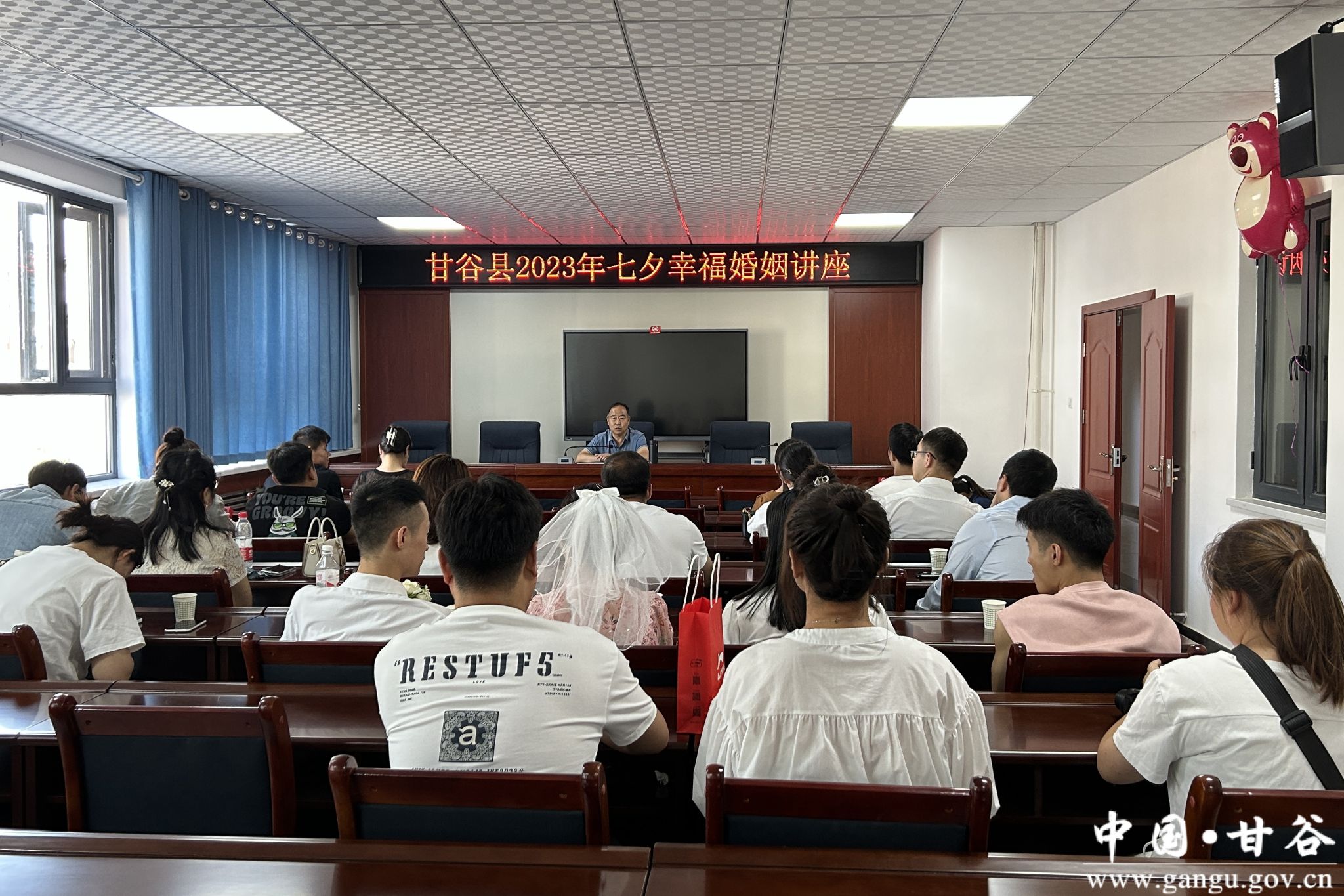 举办了“甘谷县2023年七夕幸福婚姻讲座”,从“七夕节”表达的是已婚男女不离不弃、白头偕老的情感,恪守的是对爱的承诺说起,以身边的事谈开,与结婚领证人员互动,从领到证后的认识进行交流。以诚实做人,相互信任,相互理解,相互支持,相互包容的实例探讨夫妻生活工作中的常理。