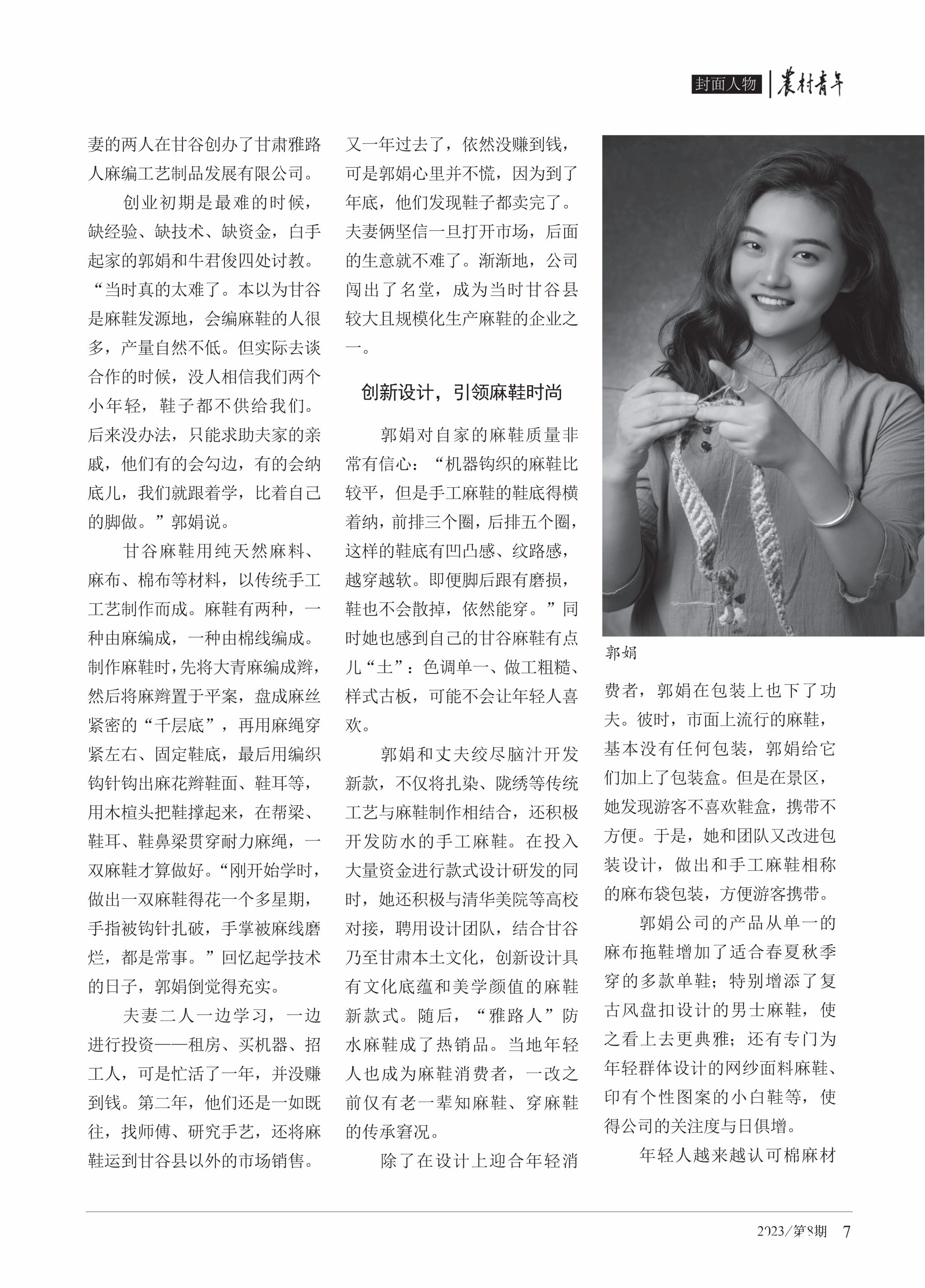 甘谷媳妇郭娟荣登《农村青年》杂志封面人物