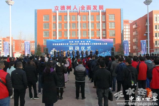 新甘谷讯 【记者 李宛郁】为进一步加强全县科学教育,激发中小学生对科学技术的学习兴趣,提高学生数字素养、科学素养,加快推进创客与人工智能相关课程在全县各中小学开展,11月18日,甘谷县在甘谷六中举办首届中小学“像山印象杯”创客编程人工智能机器人大赛,天水市电教馆馆长米强,天水云教育办公室主任李彦宾,县委宣传部、县教育局、县科技局、县科协等有关部门负责人出席启动仪式。各学区校长,县直初中、小学校长,部分学区中心学校校长,部分城区学校校长;参赛学校领队、教练员、参赛学生,大赛裁判员及工作人员共计400余人参加启动仪式。