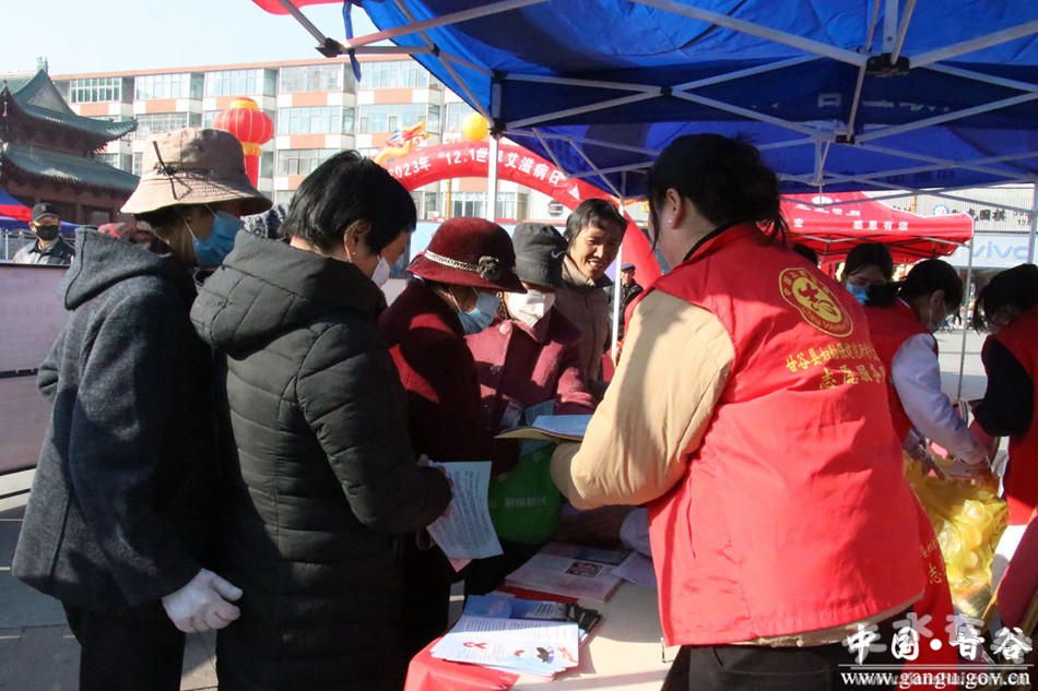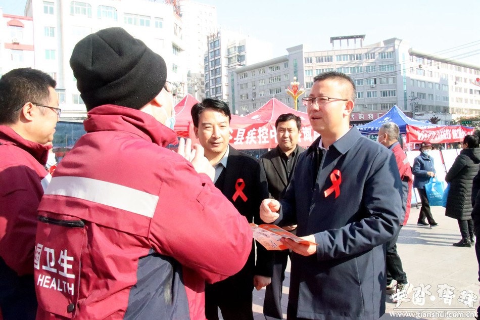 新甘谷讯【记者 李宛郁】2023年12月1日是第36个“世界艾滋病日”,为提高全县公众的防艾意识和能力,动员凝聚全社会共同参与艾滋病防治活动,12月1日上午,甘谷县卫健局、县疾控中心、县人民医院、县妇保院和大像山镇卫生院联合在大什字广场举行艾滋病宣传日主题活动,副县长金辉出席宣传服务活动。