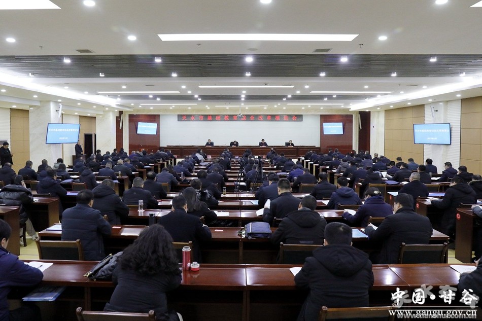 新甘谷讯【记者 颉凤 谢贝贝 王瑷萍 王永吉 王纯伟】12月19日,全市基础教育综合改革推进会在甘谷县召开。市委教育工委书记、市教育局党组书记杨瑞峰出席会议并讲话;县委副书记、县长孙忠平致辞;市教育局党组成员、副局长李长虹主持会议;副县长霍艳平出席会议;各县区教育局负责人,市教育局机关相关科室、各县区教育股、教研室负责人以及全市部分中小学校长代表共计150余人参加会议。