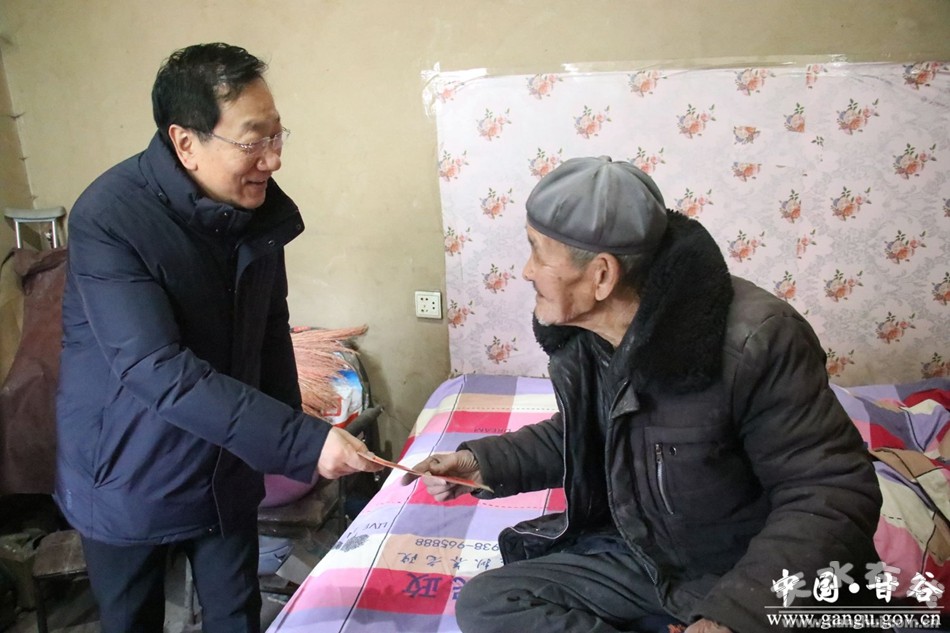 新甘谷讯【记者李宛郁】新春将至,年味渐浓。1月31日,县人大常委会主任杨帆深入安远镇、大像山镇走访慰问老党员、生活困难党员、离退休老干部、重点优抚对象、特困供养人员、低保户、残疾人等,为他们送去深切的关怀和诚挚的祝福。副县长马顺民一同慰问。