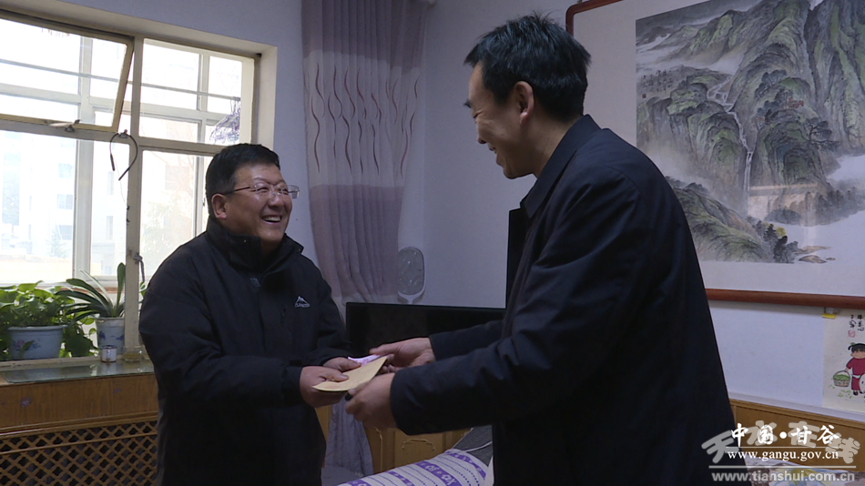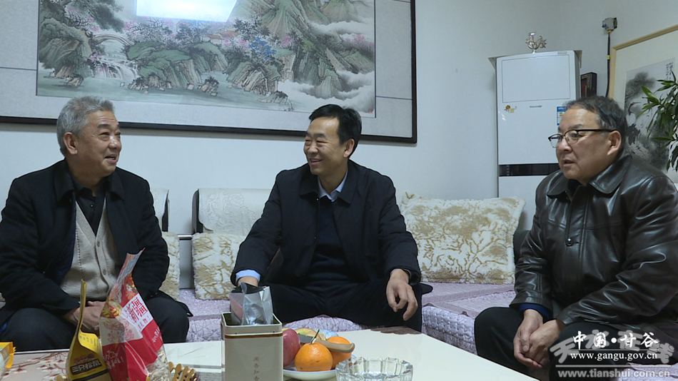新甘谷讯【记者赵小勇】春节前夕,1月31日,县政协主席令军强走访慰问离退休老干部,对他们致以节日的问候和祝福。县人大常委会副主任王新民一同慰问。
