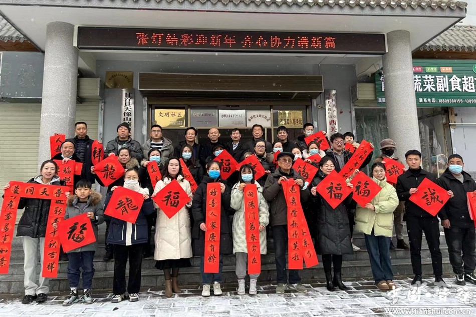 新甘谷讯“龙腾瑞气照万户,凤舞祥云映千家”。时值龙年新春佳节到来之际,甘谷县社会组织胸怀父老乡亲,心系困难群众,主动承担社会责任,深入新兴镇康家滩村片区、大像山镇西关社区开展了迎新春送文化送温暖活动。全县16家社会组织负责人和书画爱好者,以及爱心志愿者参加了活动。