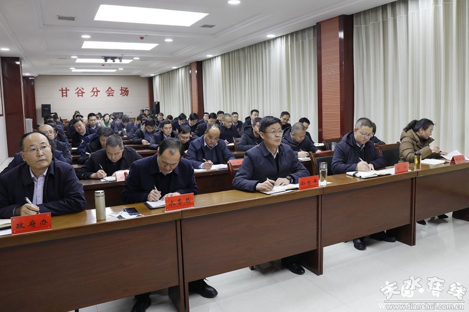 新甘谷讯【记者颉凤】3月1日,天水市2024年水利工作会议暨2023年河湖问题专项行动总结会议召开,传达学习全省水利工作会议精神,通报全市2023年水利工作和河湖问题“大排查大整治大提升”专项行动开展情况,安排部署2024年水利工作重点任务。市委副书记、市长王国先出席会议并讲话。副市长康泰来主持会议。