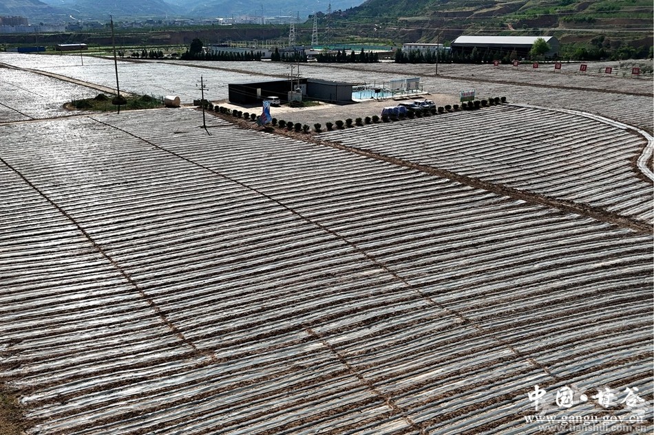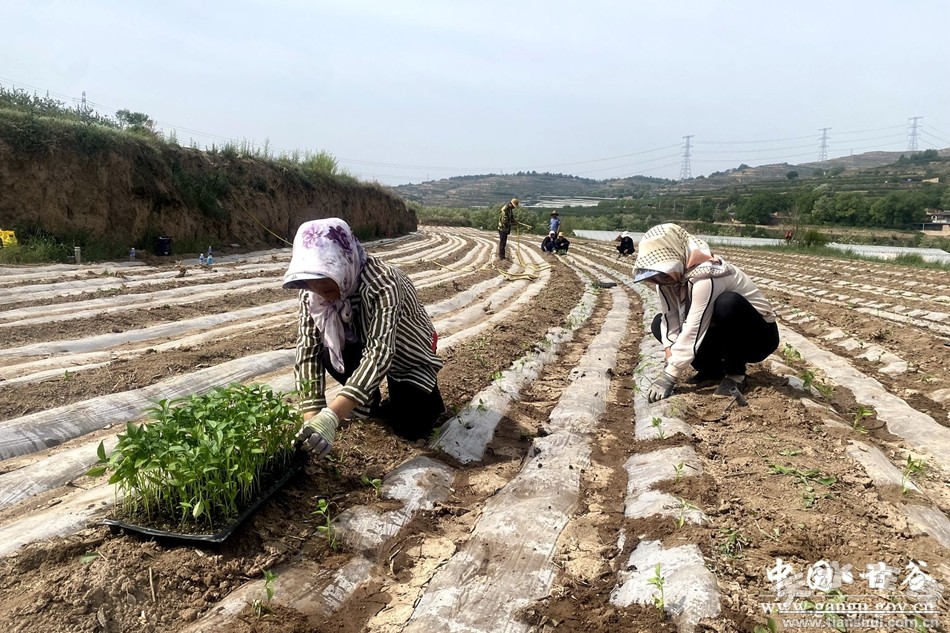 在甘谷县安远镇一处甘谷辣椒智能水肥一体化示范基地,基地自主培育了“七寸红”“天椒9号”系列辣椒苗,伴随着大型辣椒移栽机和工作人员相互配合,完成辣椒苗的移栽、覆土、浇灌等工作。与此同时,在新兴镇侯家沟村的辣椒种植示范基地,种植工作也在如火如荼地进行,基地配套水肥一体化灌溉系统,通过管网实现节水增效目的。