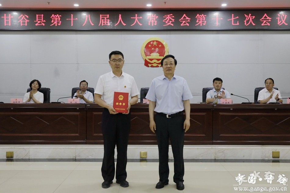 会议以无记名投票表决方式任命李羽飞为甘谷县人民政府副县长,并颁发了任命书。免去张涛县人民政府副县长职务、王志峰县人民法院审判员职务。会后,举行了新任命国家机关工作人员宪法宣誓仪式。