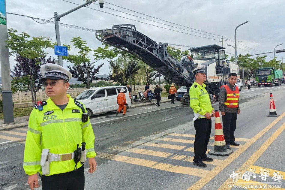 新甘谷讯 高考来临之际,为做好考点考前道路交通安全隐患治理工作,6月1日下午,甘谷县公安局交警大队积极协调甘谷公路段调用上级部门大型铣刨机,铲除甘谷六中考点路面拱起车辙严重交通安全隐患,并联合甘谷六中共同加强学校师生安全宣传引导,为高考备考保驾护航。