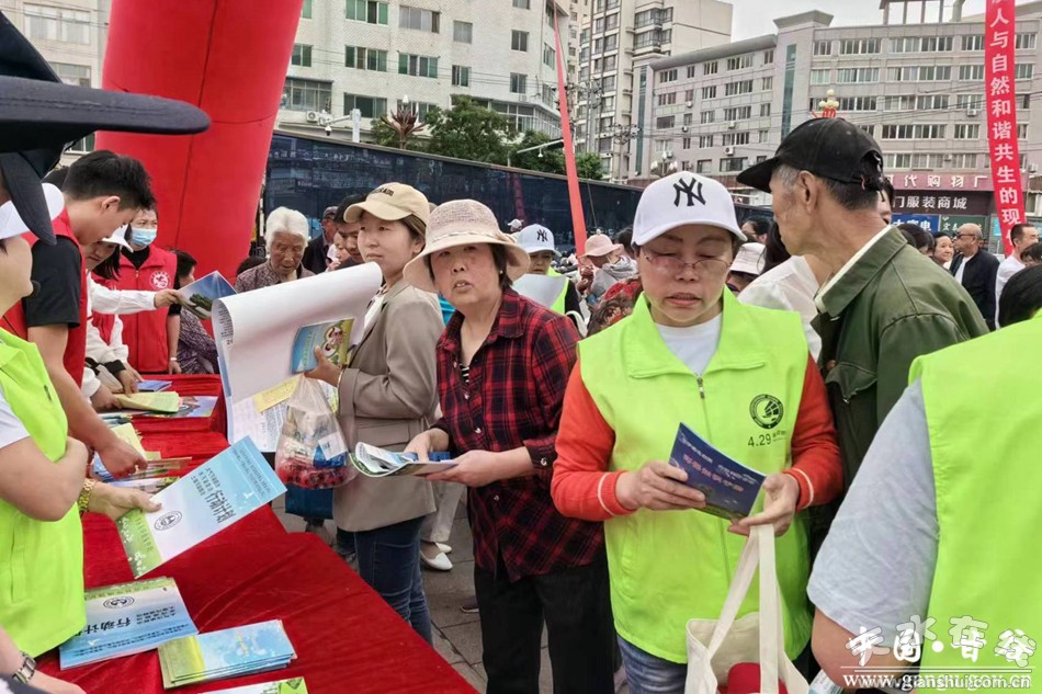 新甘谷讯【通讯员 蒲凯】 6月5日上午,甘谷县“六五”环境日宣传活动在大什字广场举行。市生态环境局甘谷分局、县公安局、水务局、住建局、林草局、国土局、执法局、农业局、中医院、农工党甘谷总支、祁连山水泥、移动公司、环保志愿者以及社会各界群众等共计200余人参加活动。