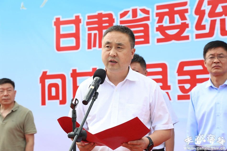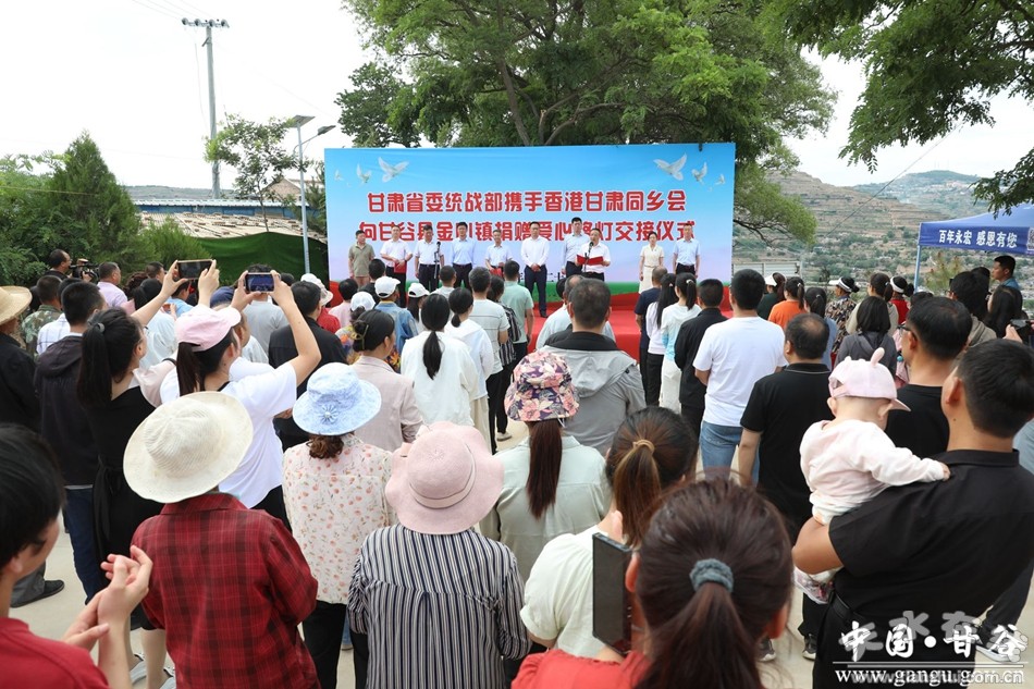新甘谷讯【记者李宛郁】6月20日,甘肃省委统战部携手香港甘肃同乡会捐赠爱心路灯交接仪式在甘谷县金山镇七家山村举行。省委统战部副部长郁川虎,香港甘肃同乡会副会长姚军平,县委常委、统战部部长王见学出席仪式并讲话。省委统战部三处处长魏茂强,省委统战部三处二级调研员杨健国,香港甘肃同乡会秘书长张莉,县委副书记、县长孙忠平出席仪式。市委统战部副部长、工商联党组书记韩广文主持仪式。金山镇部分干部、七家山村村组干部及群众代表共计60余人参加仪式。