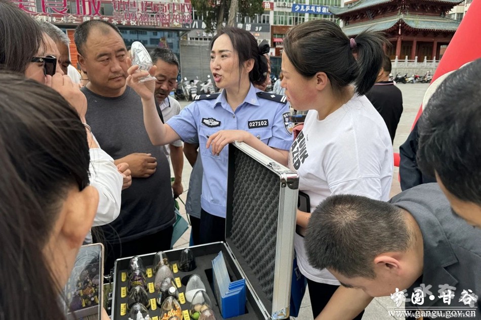 活动中,民警通过悬挂横幅、发放传单、摆放展板、设立咨询台、展示毒品仿真模型、禁毒知识互动问答、现场答疑等方式,向广大群众详细讲解了毒品的种类和特征、危害后果以及如何防范新型毒品等有关知识,让广大群众对各类毒品有了更直观的认识。同时,民警结合周边鲜活的事例,引导大家在学习生活中要牢固树立“健康人生,绿色无毒”的理念,深刻认识到毒品的危害性,呼吁广大群众提高禁毒意识,牢固树立“健康人生、绿色无毒”理念,争做拒毒防毒的宣传员,为建设幸福美好新甘谷贡献力量。