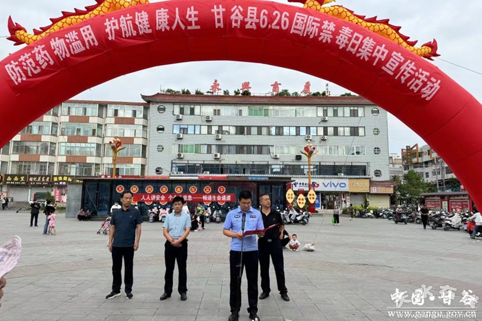 新甘谷讯【通讯员马彦龙】为进一步提升全民禁毒意识,特别是青少年识毒、防毒、拒毒能力,营造浓厚的禁毒宣传氛围。6月26日,甘谷县禁毒办联合各禁毒委成员单位在大什字广场开展以“护航青春防范青少年药物滥用”为主题的6.26国际禁毒日集中宣传活动。活动由县公安局副局长、县禁毒办主任苟维敬主持。