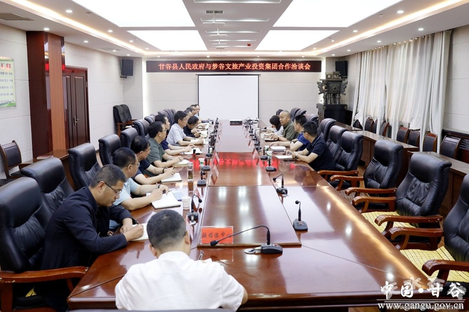 新甘谷讯【记者颉凤】6月27日,甘谷县人民政府与梦谷文旅产业投资集团就深化务实合作举行合作洽谈会。新华社中国经济信息社甘肃中心主任蔺良、甘肃梦谷文旅产业投资集团有限公司董事长邱本良出席洽谈会,县委副书记、县长孙忠平主持洽谈会,副县长马顺民出席会议。