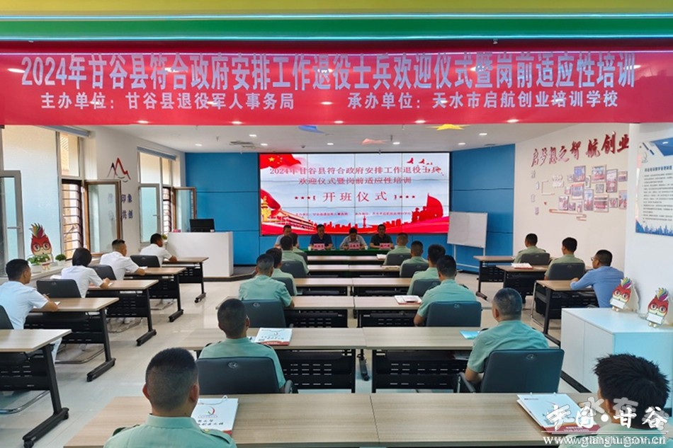 新甘谷讯【通讯员刘晓楠】7月30日上午,甘谷县2024年度转业士官岗前适应性培训在甘谷县电商科创协同服务中心开班。2024年以政府安排工作退出现役的24名退役士兵参加培训。培训旨在帮助转业士官全面熟悉安置政策,了解当前形势政策和我县经济社会发展现状,尽快完成思想转变、身份转变,为他们转换新角色、融入新岗位、适应新要求奠定坚实基础。