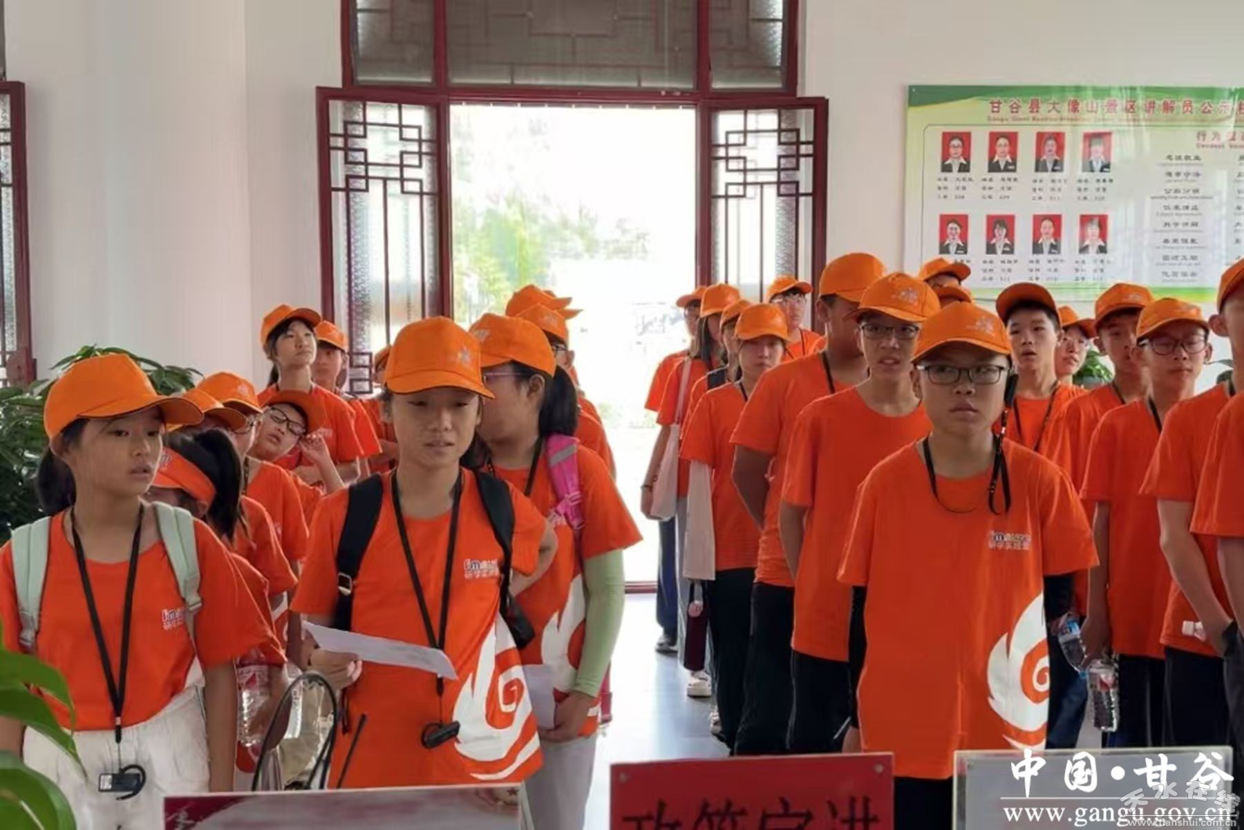 暑期正酣,每天来甘谷旅游的人络绎不绝。在大像山景区游客服务中心,记者看到来自江苏省徐州市的一个研学团队的学员们,正在排队依次背诵诗词。