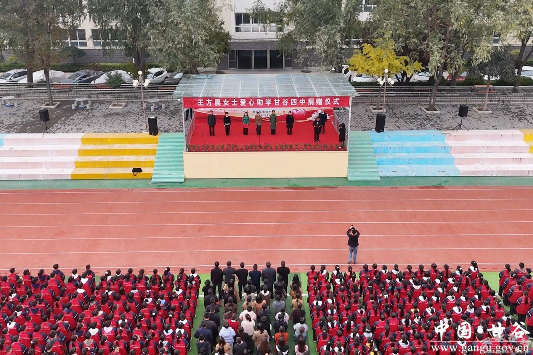 新甘谷讯【记者 王菲】11月1日,甘谷县第四中学迎来了一场充满爱心与希望的盛会——爱心企业家、甘谷四中杰出校友王方晨女士爱心助学捐赠仪式在学校操场隆重举行,为甘谷四中的学子们送上温暖与关怀。县人大常委会副主任杨晓涛、副县长霍艳平、县政协副主席张菊连出席捐赠仪式。县教育局、磐安镇相关负责人及甘谷四中全体师生参加活动。
