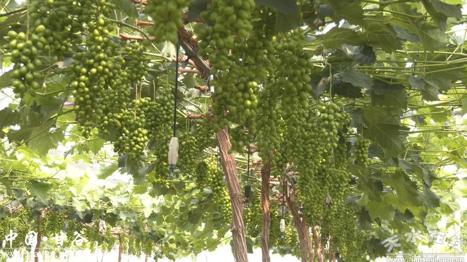 甘谷县金山镇米谷川村村民王有生告诉记者,阳光玫瑰今年长势还可以,往年上市是八月初几,今年有个闰月,大概就到八月十五就能上市,有爱吃阳光玫瑰的就到咱们园子里采摘来了,有的打电话就送过去了,在这个销量上我们基本上算不愁。