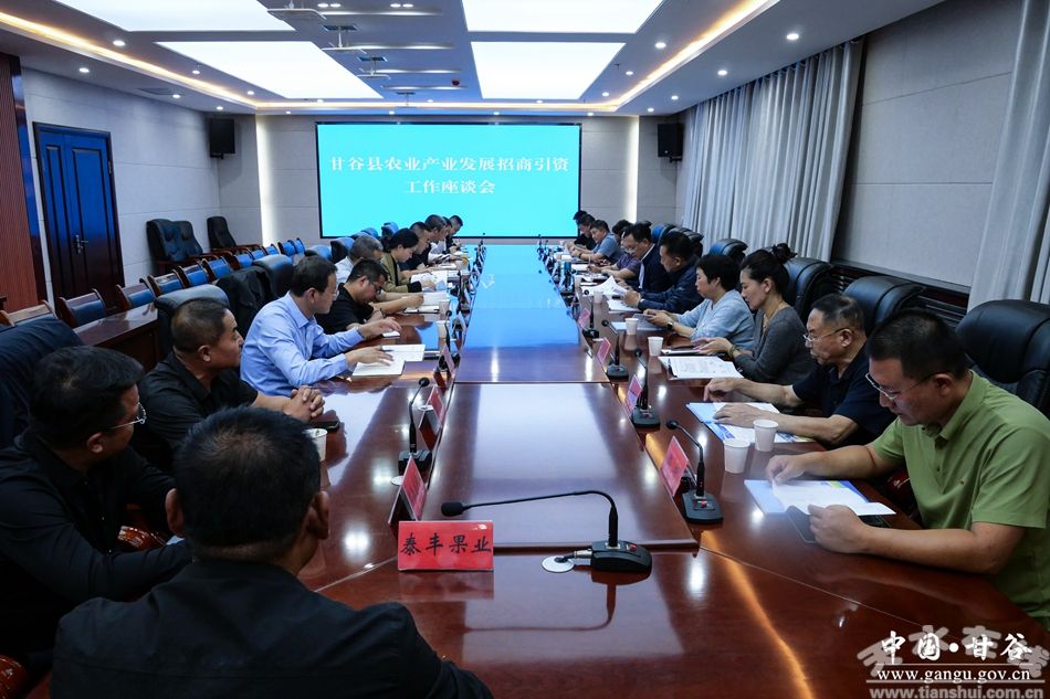 新甘谷讯【记者王永吉】9月7日,甘谷县召开农业产业发展招商引资工作座谈会。中国农业科学院果树研究所所长程存刚以及部分省市专家、企业家代表出席会议。县委副书记汪晓娟主持会议。县委常委、副县长陈向荣,相关部门主要负责人以及甘谷县企业代表参加会议。