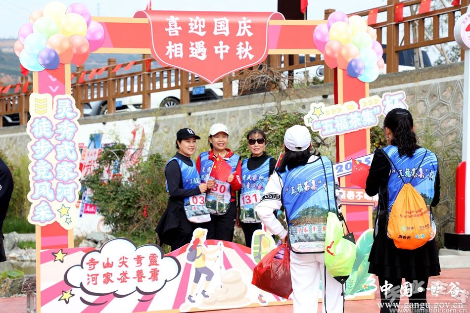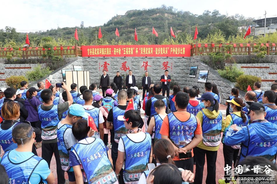 新甘谷讯【记者李宛郁】9月30日,武家河镇庆国庆·迎中秋“五福茶集”杯“灵秀武家河·徒步竞风采”户外徒步比赛顺利举行。活动吸引了来自本地及周边地区共150余名徒步爱好者共同参与,他们以脚步丈量生态美景,用行动践行健康理念,既为双节同庆增添了活力风采,也展现了当地生态旅游的独特魅力。