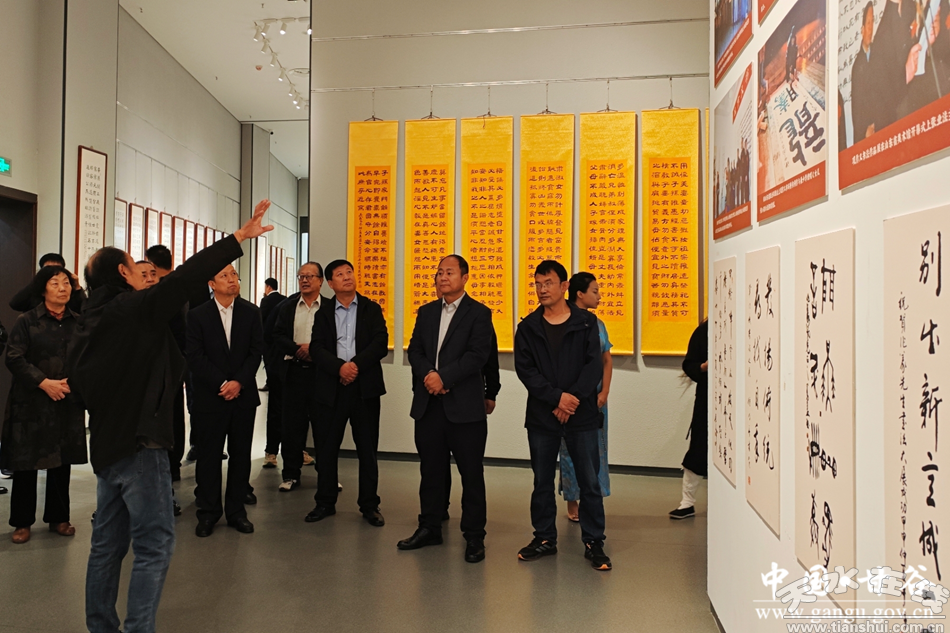 新甘谷讯【记者王菲】翰墨飘香颂盛世,丹青溢彩迎双节。值此中秋、国庆双节同庆之际,9月30日,“赤子丹心翰墨华章”——甘谷籍中书协会员巩作义书法作品展开展仪式在县博物馆举行。此次展览旨在以精湛的书法艺术展现传统文化魅力,抒发家国情怀,为节日献上一份文化厚礼。