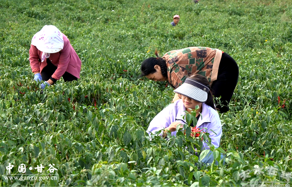 甘肃省甘谷县金山镇水家岔村村民张进军说:我们已经摘了十多天了,每天20个人在采摘,一天能摘4000到5000斤辣椒,当天摘的当天就卖完了。你看这辣椒,肉质厚、味道香,客户抢着要,咱们心里也踏实。