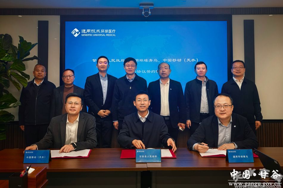新甘谷讯11月7日,甘谷县人民政府与通用环球青鸟健康科技股份有限公司、中国移动(天水分公司)智慧养老服务战略合作协议签约仪式在通用技术环球医疗集团总部举行。签约仪式上三方代表围绕养老服务体系化设计、智慧化赋能和产业化协同进行深入交流洽谈。