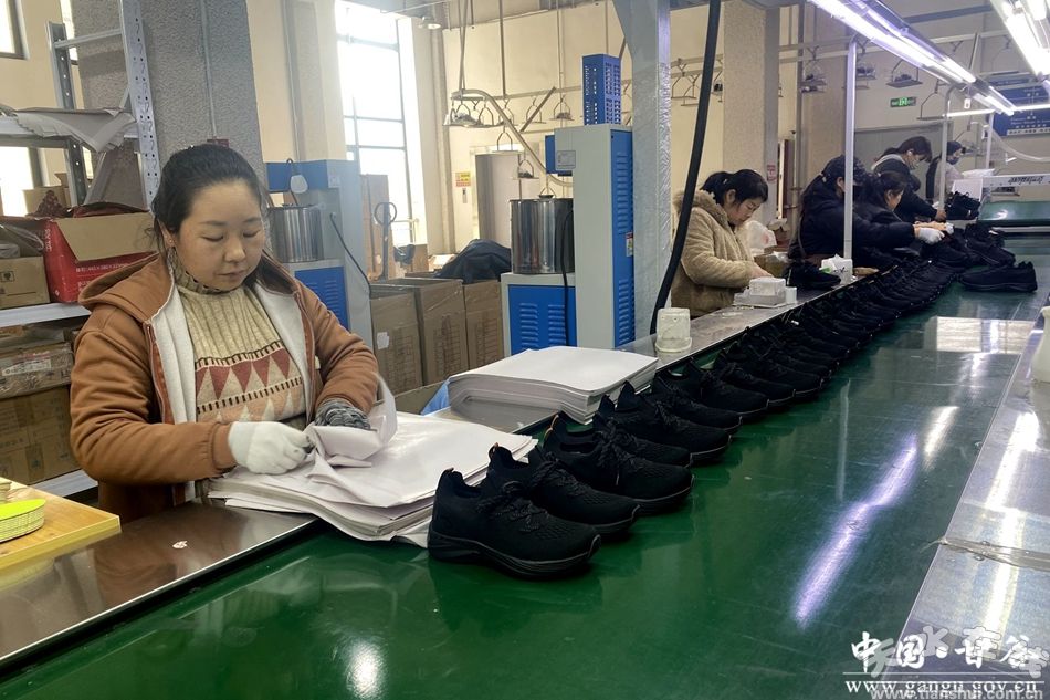 走进甘肃陇山驰体育用品有限公司生产车间,缝纫机的哒哒声、裁剪的沙沙声交织成激昂的生产乐章。西关村村民蒋文英正和工友们并肩忙碌,踩踏板、穿针线,一道道工序有条不紊,一双双做工精美的鞋子逐渐成型。这份家门口的工作,让她心里满是踏实与满足。