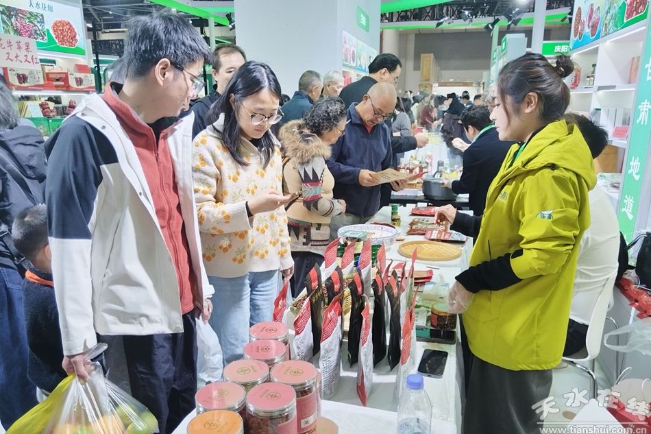 展会期间,甘谷农特产品展区成为展馆内的“热门打卡点”。线下展台前,香辣诱人的辣椒、辛香浓郁的花椒、新鲜脆甜的苹果吸引众多市民驻足品尝、咨询采购。首次亮相浙江农博会的甘谷油泼辣子尤为抢眼,工作人员现场讲解产品种植历史、加工工艺及营养价值,让观众深入了解“甘味”特产的独特魅力。线上借助农博会数字化平台,通过直播带货、线上展厅等形式扩大销售覆盖面。参展企业实现线上销售8.6万余元,线下销售6.3万余元,签订88.5万余元订单为后续长期合作奠定基础。