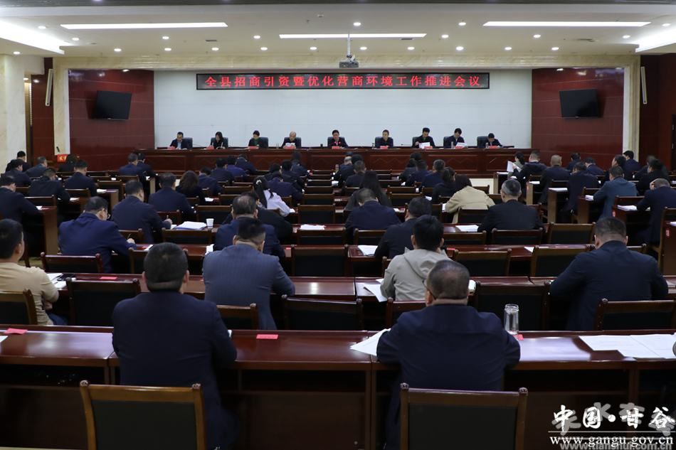 新甘谷讯【记者黄鑫】4月23日,甘谷县召开招商引资暨优化营商环境工作推进会议,传达学习全省扩大开放暨优化营商环境大会、全市招商引资暨优化营商环境推进大会精神,通报今年一季度全县招商引资任务完成情况和2025年优化营商环境情况,盘点总结工作成效、研究分析当前形势、安排部署重点任务,动员全县各级各部门全力以赴抓招商、优环境、促发展,以实际成效检验树立和践行正确政绩观学习教育成果,为“十五五”良好开局奠定坚实基础。县委书记孙忠平出席会议并讲话,县委副书记、县长许祖熙主持会议。