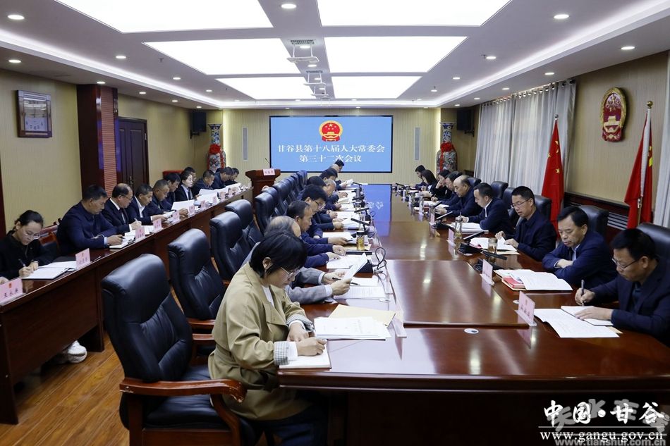 新甘谷讯【记者颉凤】4月24日,甘谷县第十八届人大常委会召开第三十二次会议。县人大常委会主任于旭峰、副主任杨晓涛分别主持第一次和第二次全体会议。县人大常委会副主任陈旭、魏杰、张海平出席会议。县委常委、纪委书记、监委主任惠斌,县人民法院院长石岚,县人民检察院检察长邵新建列席会议。