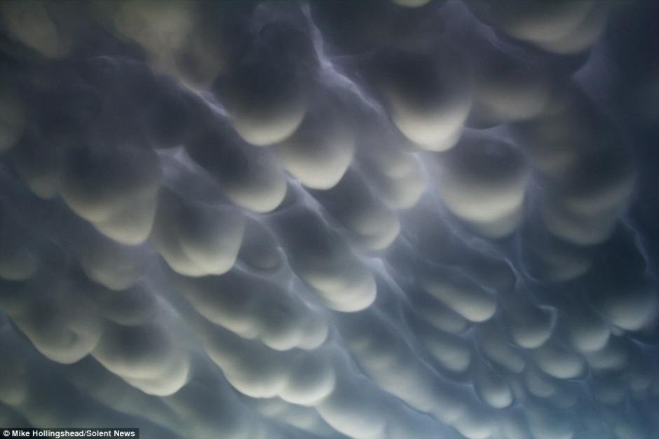据英国《每日邮报》11月20日报道,一位来自美国内布拉斯加州的风暴追逐者Mike Hollingshead拍摄了一组令人难以置信的天空中“云泡沫”的照片。据了解,这些云彩被称为是“乳状云”,是雷暴天气过后才能出现的罕见的云彩状态。(网页截图)
