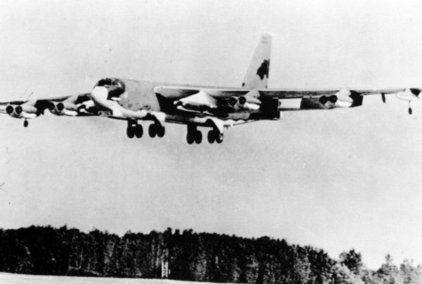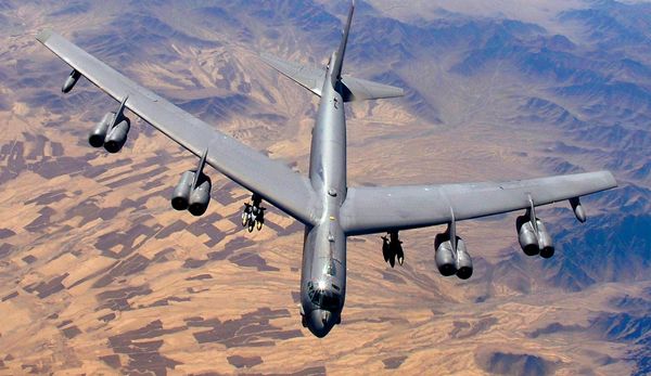 B-52轰炸机是可投射核武器的亚音速远程轰炸机,绰号“同温层堡垒”,曾在越战时期对北越实施地毯式轰炸。1991年的海湾战争时期,B-52担负了四成对伊拉克轰炸任务。