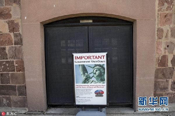 当地时间1月20日,美国联邦政府停摆,自由女神像景点关闭。