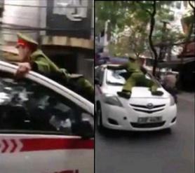 在越南,一名交警为阻止逆向行驶的司机逃逸