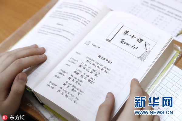 2017年12月14日,俄罗斯莫斯科,当地一所中学,学生们在课堂学习中文。