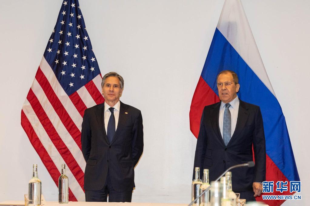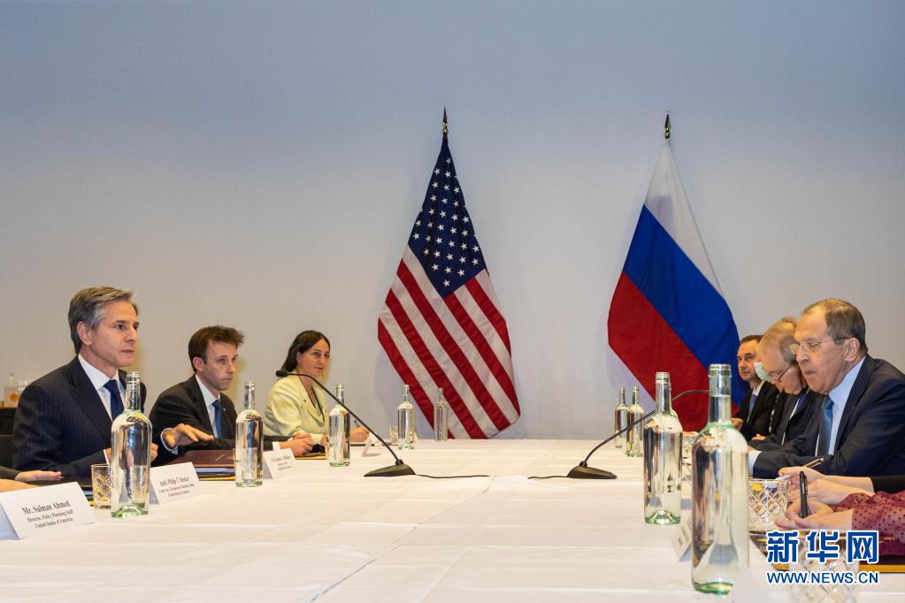 5月19日,美国国务卿布林肯(左一)和俄罗斯外长拉夫罗夫(右一)在冰岛雷克雅未克举行会晤。新华社发(冰岛外交部供图) |