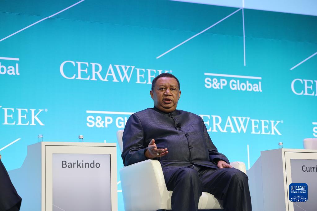 3月8日,石油输出国组织(欧佩克)秘书长巴尔金多在美国休斯敦剑桥能源周会议上发表讲话。新华社记者 徐剑梅 摄